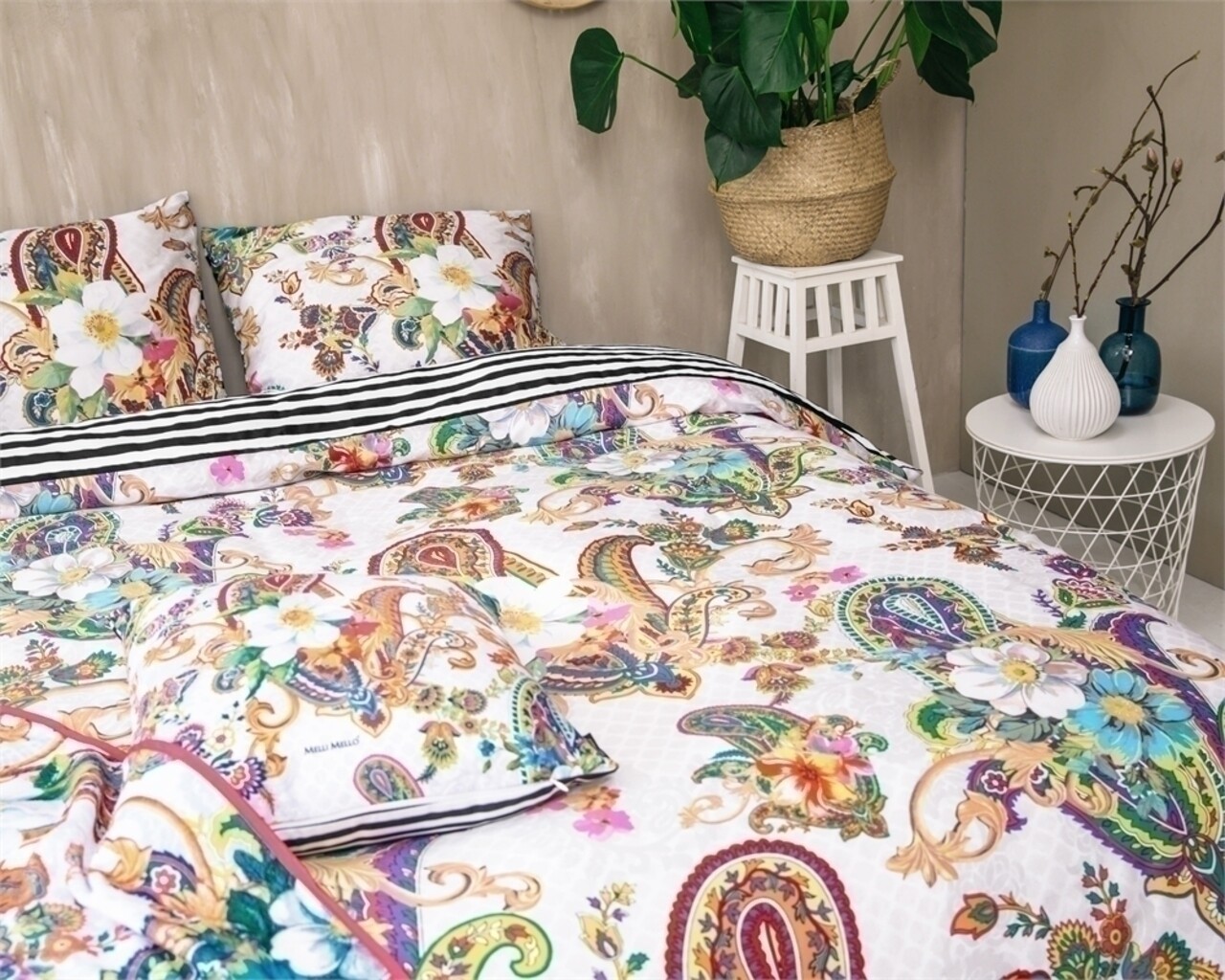 Lenjerie de pat pentru 2 persoane, Royal Textile, Melli Mello Kemya White, 3 piese, 100% bumbac satinat, multicolor