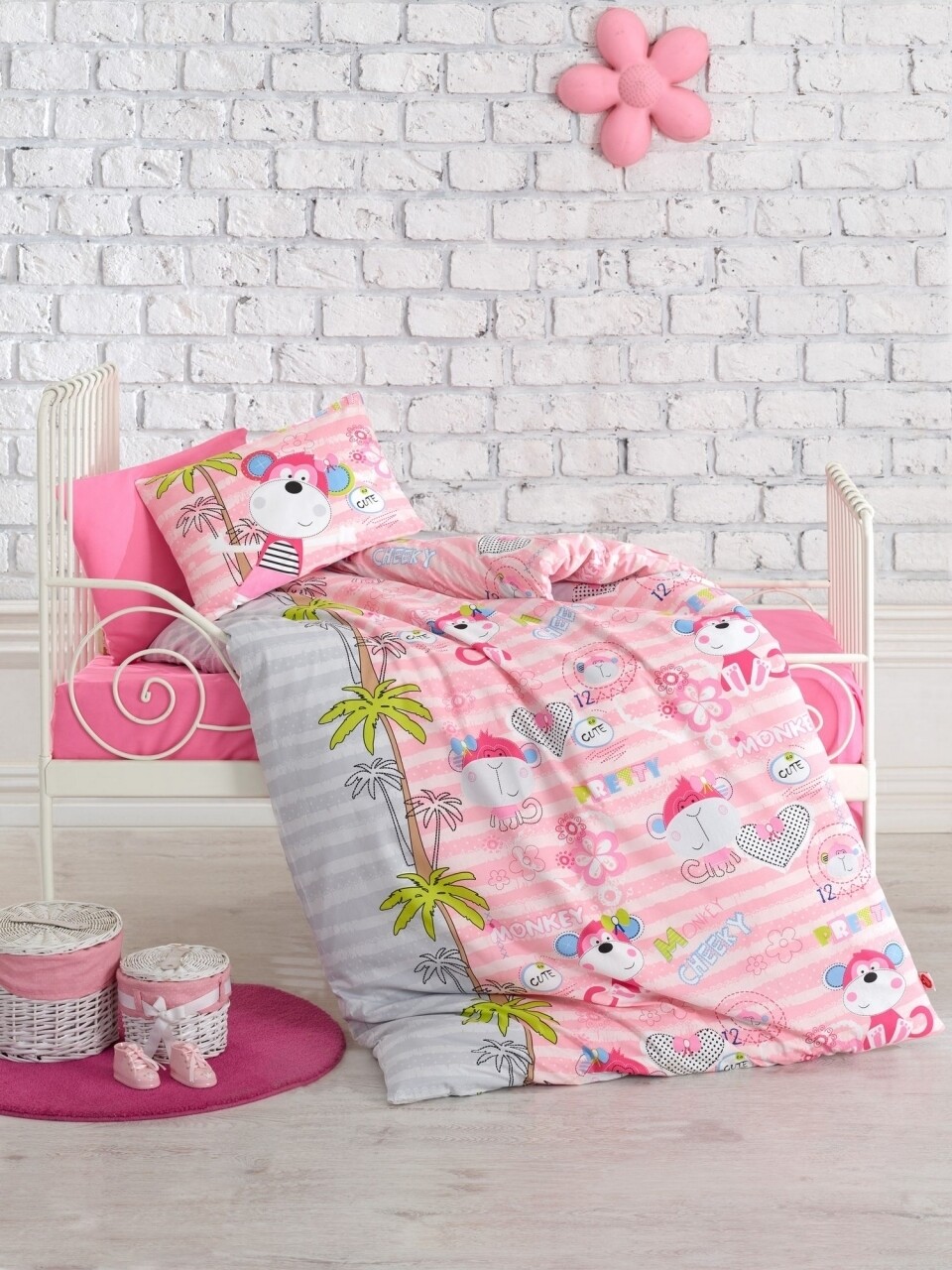 Lenjerie de pat pentru copii, 4 piese, 100% bumbac ranforce, Cotton Box, Monkey