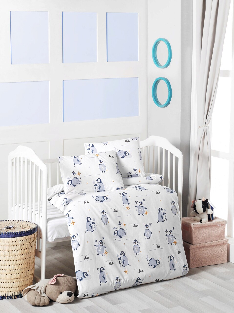 Lenjerie de pat pentru copii, L'essentiel Maison, Happy, Alb/Albastru inchis