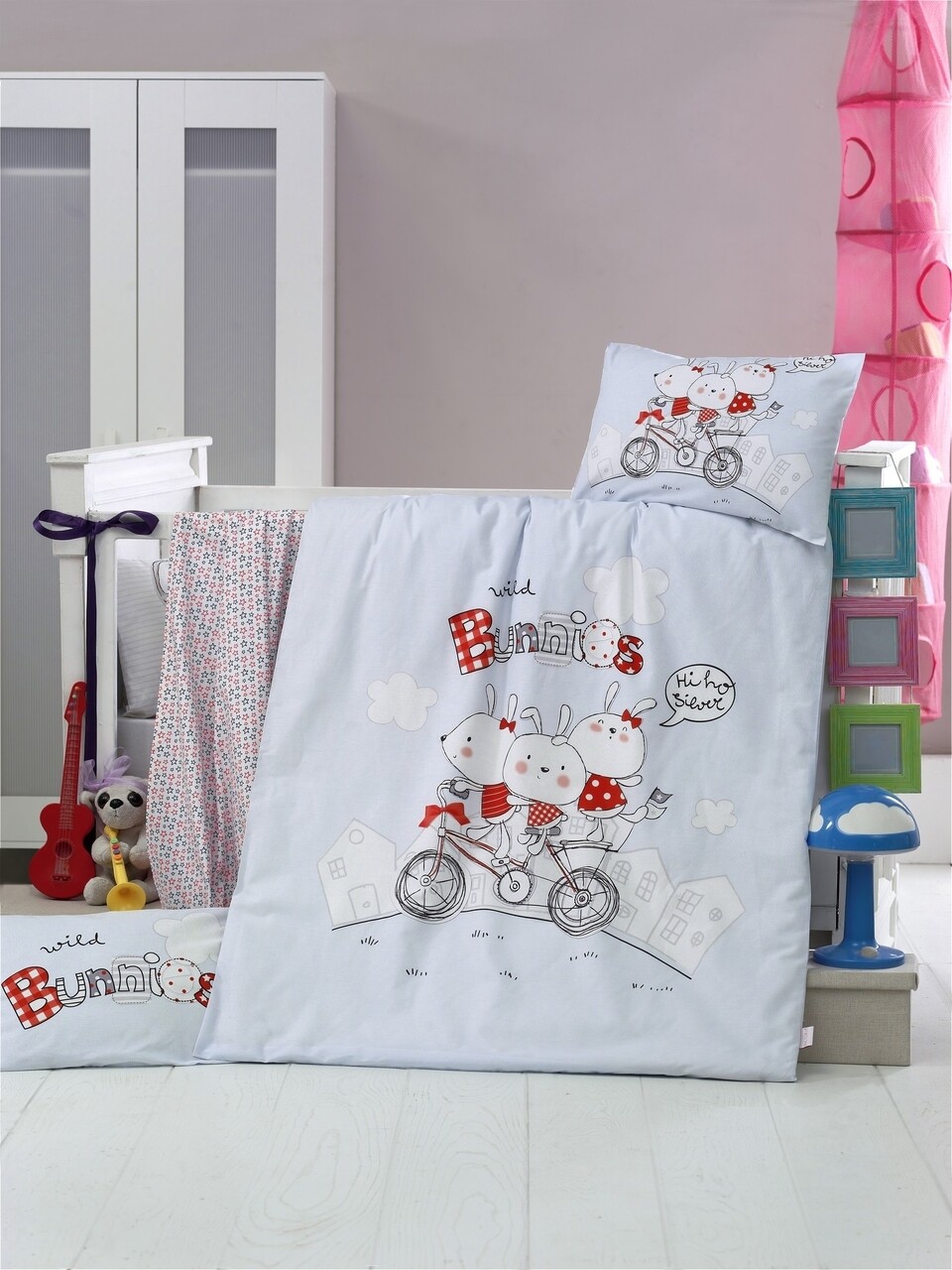 Lenjerie de pat pentru copii, Victoria, Bunnies, 4 piese, 100% bumbac ranforce, multicolor