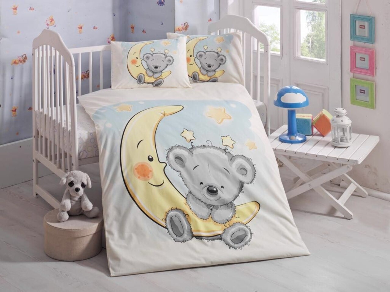 Lenjerie de pat pentru copii, Victoria, Le petit Nicolas, 4 piese, 100% bumbac ranforce, gri/galben