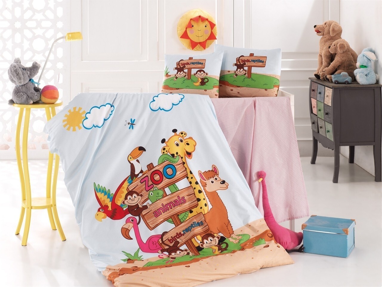 Lenjerie de pat pentru copii Zoo, Nazenin Home, 4 piese, 120 x 160 cm, 100% bumbac ranforce, multicolora