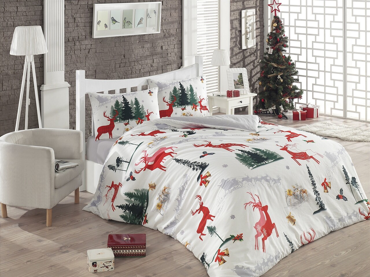Lenjerie de pat pentru doua persoane, Colors of Fashion, print 3D, 308, 100% bumbac ranforce, 3 piese, multicolor