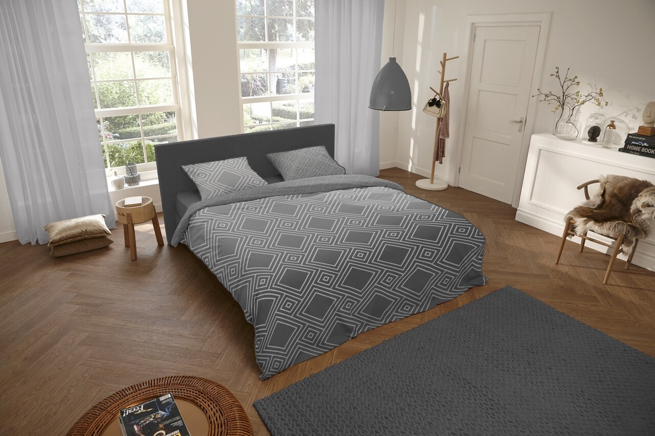 Lenjerie de pat pentru doua persoane, Descanso Myrna, 100% bumbac satinat, 3 piese, gri