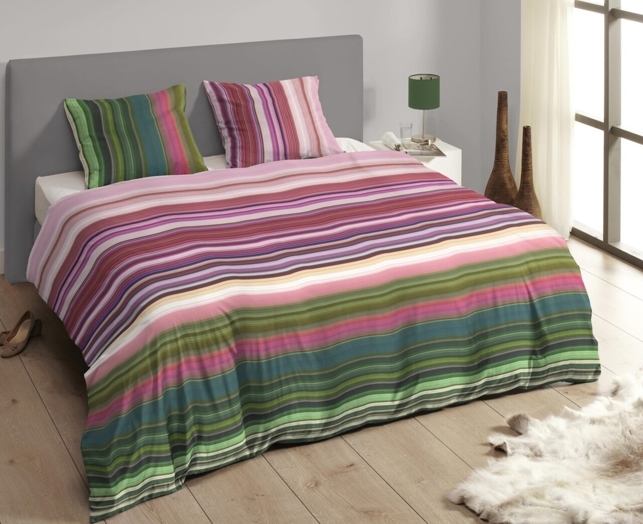 Lenjerie de pat pentru doua persoane Descanso Ryanna, 100% bumbac satinat, 3 piese, multicolora