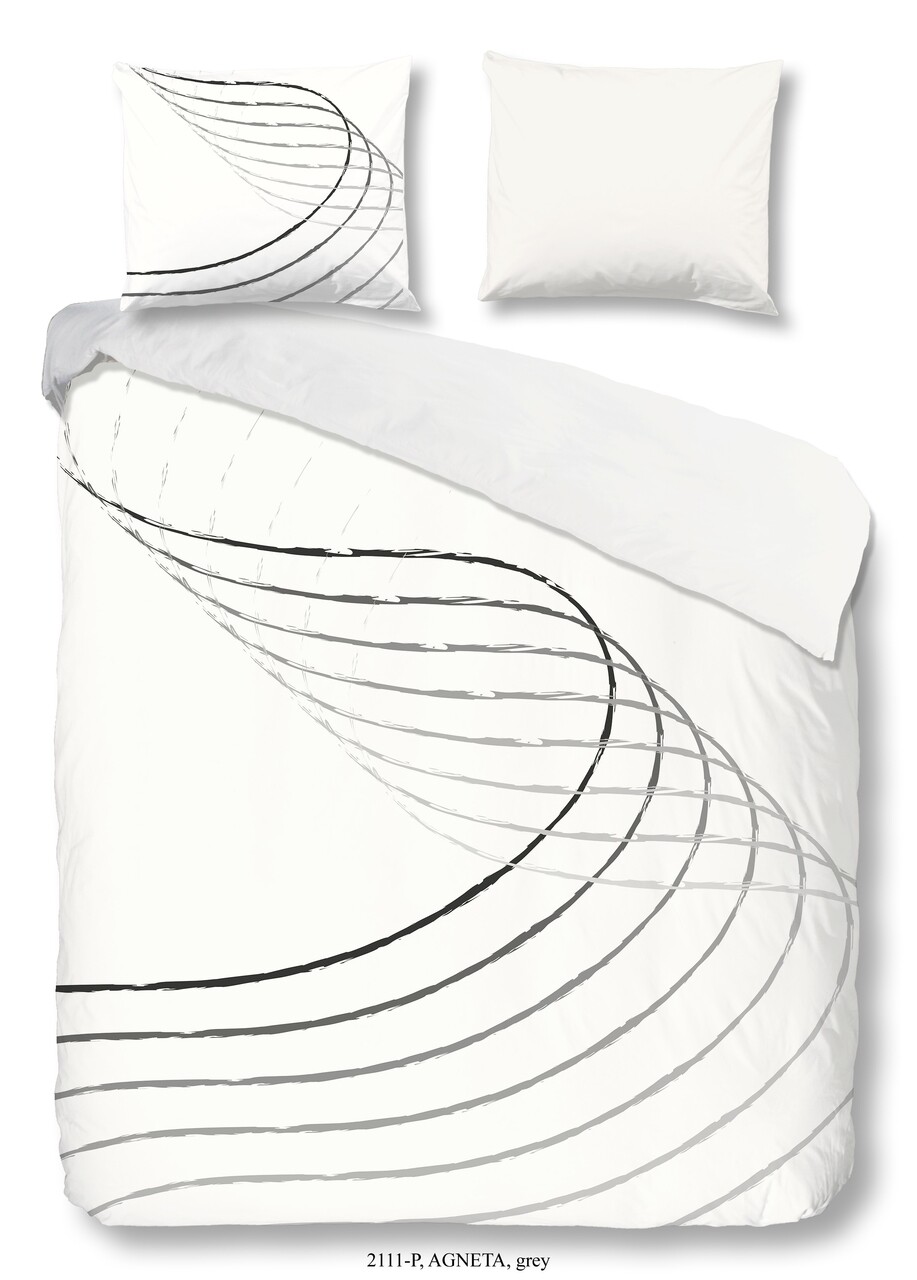 Lenjerie de pat pentru doua persoane, Good Morning Agneta, 100% bumbac, 3 piese, alb/gri