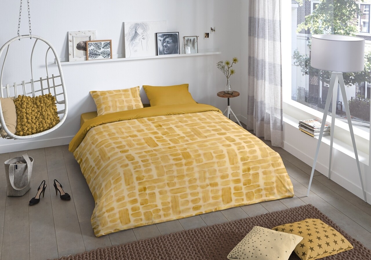 Lenjerie de pat pentru doua persoane, Good Morning Amber, 100% bumbac, 3 piese, ocru