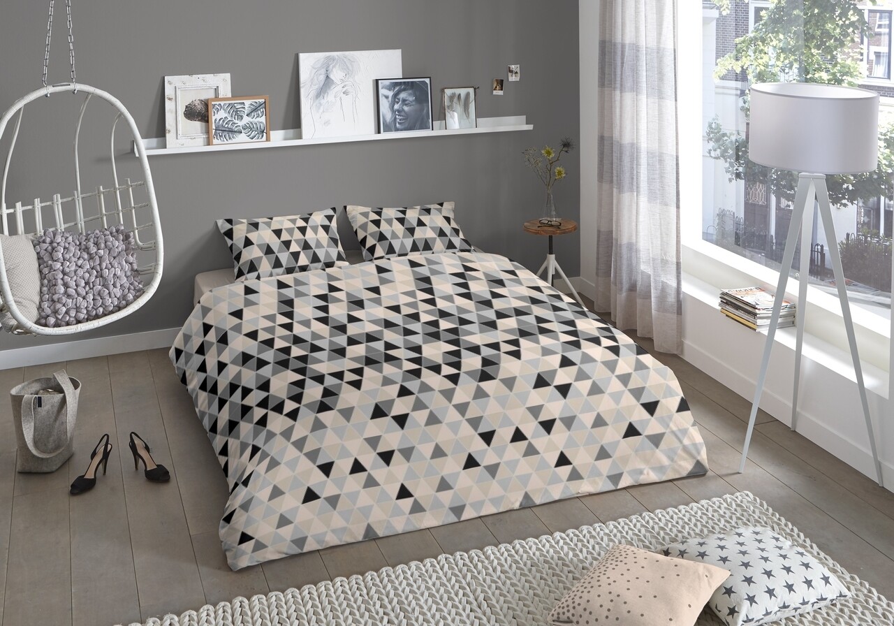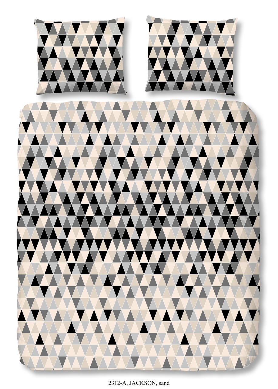 Lenjerie de pat pentru doua persoane, Good Morning Jackson, 100% bumbac, 3 piese, negru/bej