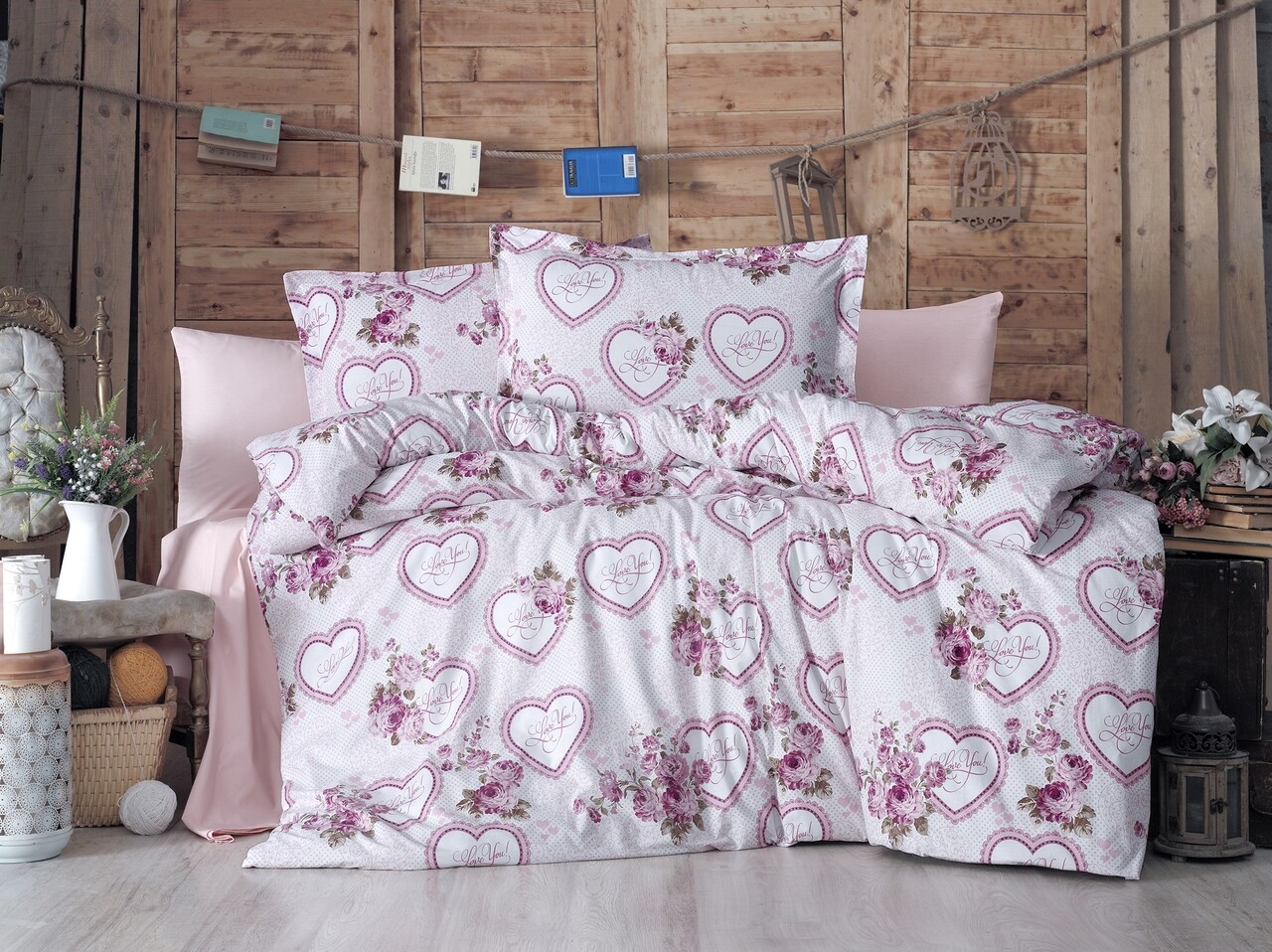 Lenjerie de pat pentru doua persoane, Hearts Bedora, 4 piese, 100% bumbac