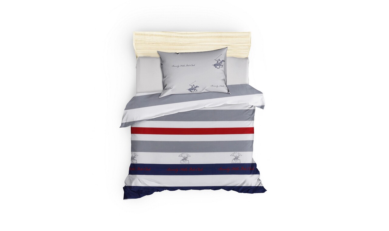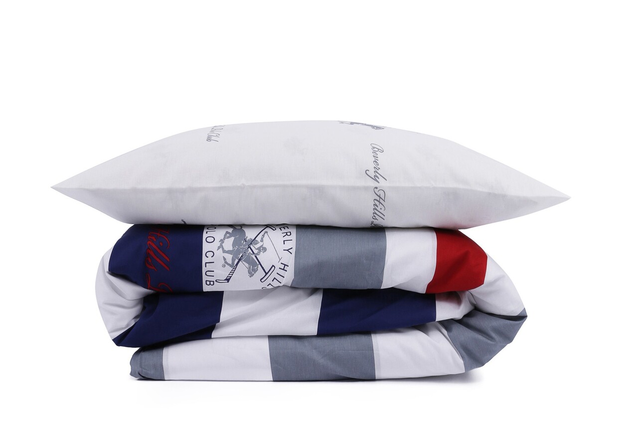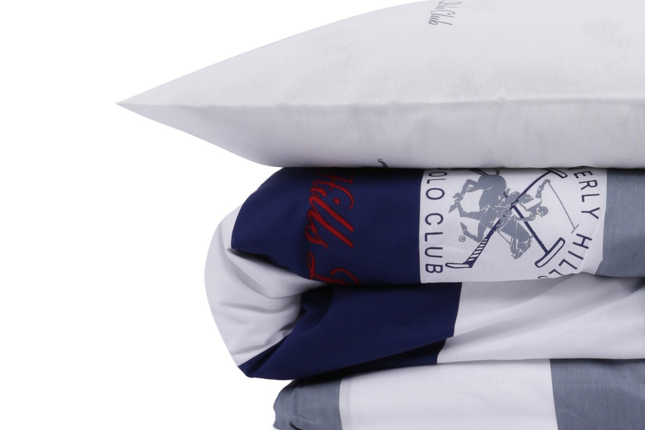 Lenjerie de pat pentru o persoana, 2 piese, 140x200 cm, 100% bumbac ranforce, Beverly Hills Polo Club, BHPC 001, albastru inchis