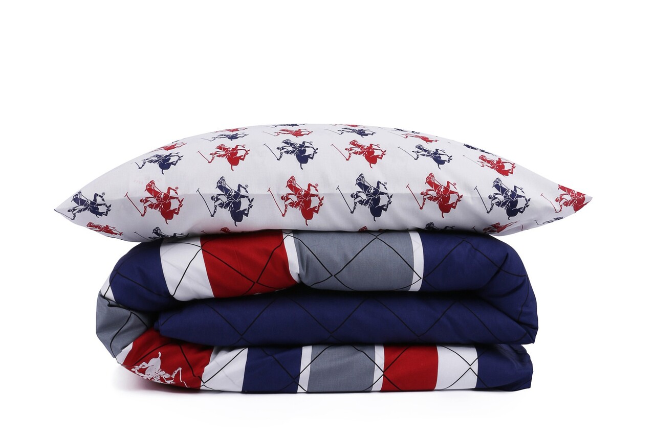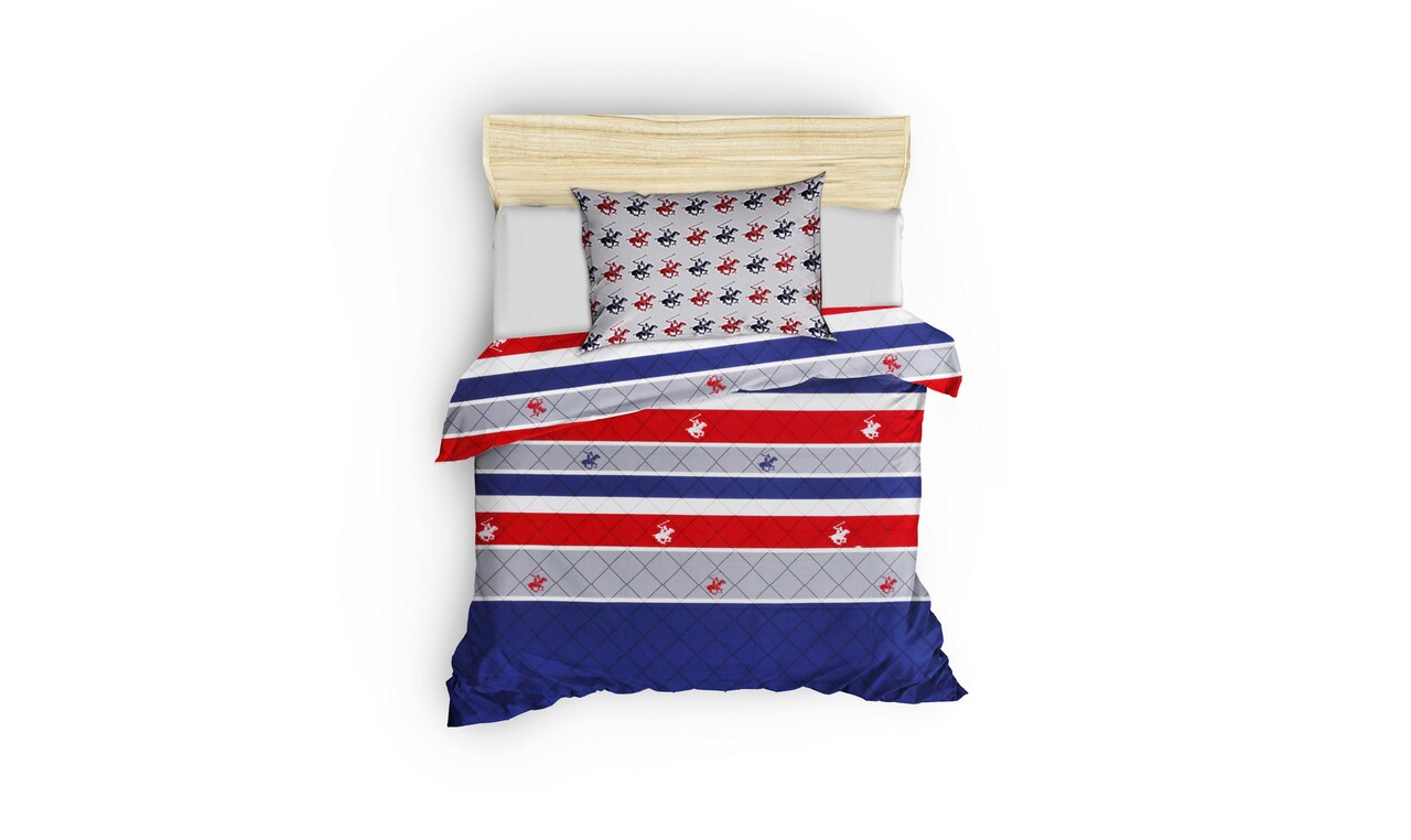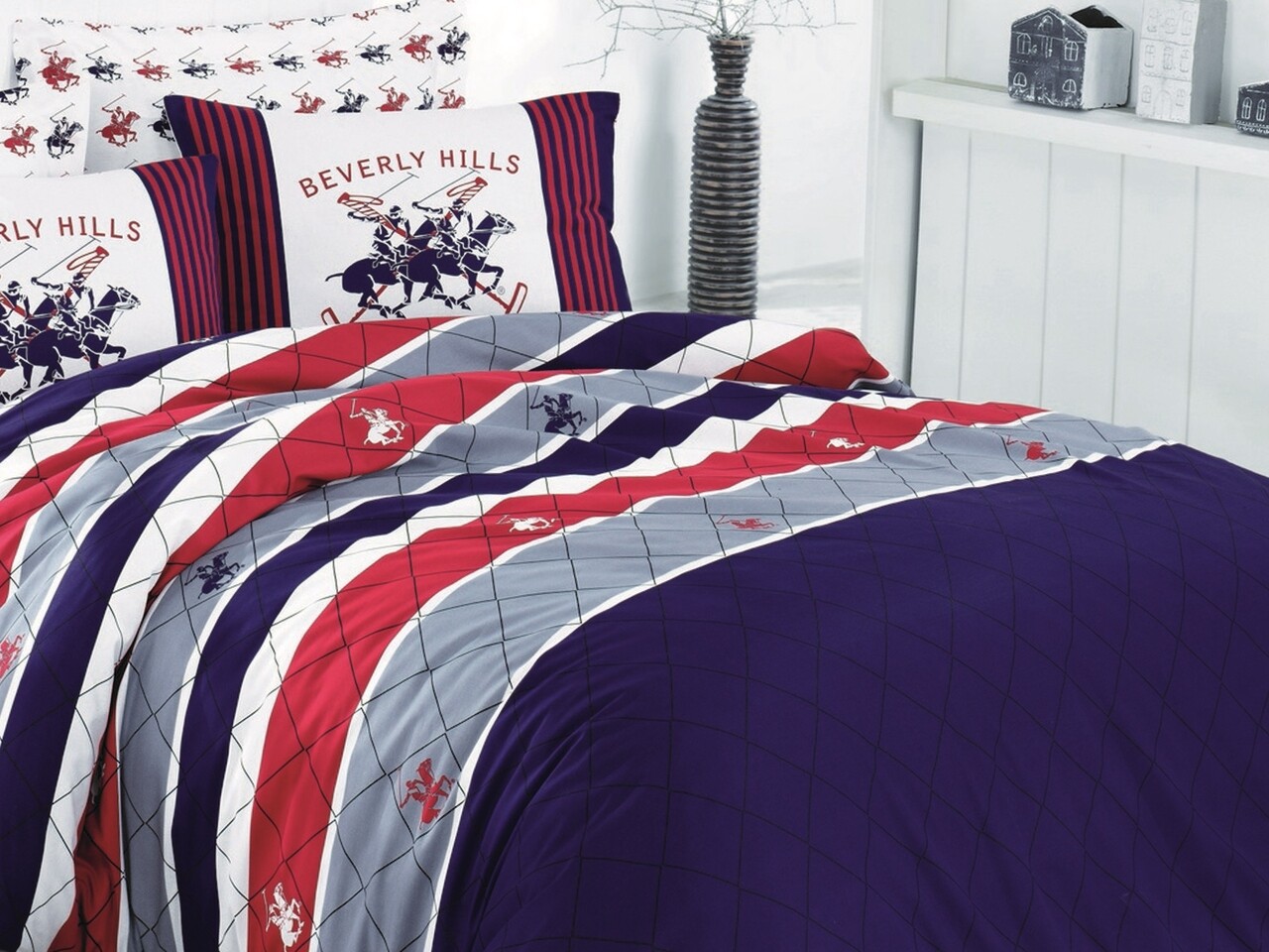 Lenjerie de pat pentru o persoana, 2 piese, 140x200 cm, 100% bumbac ranforce, Beverly Hills Polo Club, BHPC 011, albastru inchis