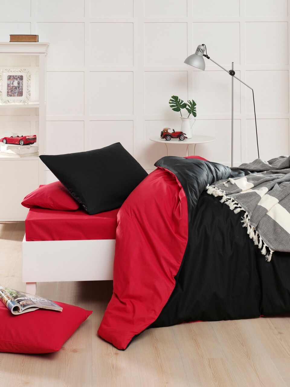 Lenjerie de pat pentru o persoana, 2 piese, 140x200 cm, 100% bumbac ranforce, Mijolnir, Cift Yonlu, rosu/negru