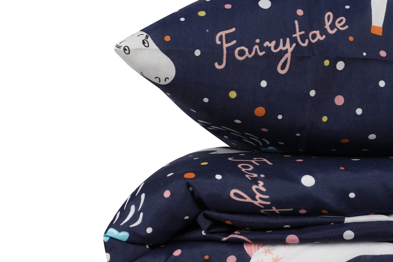Lenjerie de pat pentru o persoana, 2 piese, 140x200 cm, amestec bumbac, Eponj Home, Magic Unicorn, albastru inchis