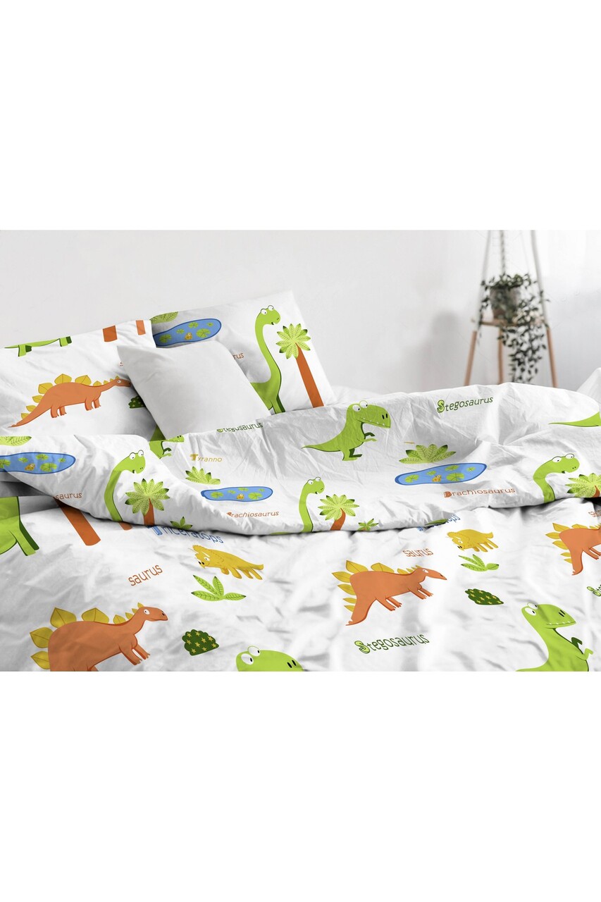 Lenjerie de pat pentru o persoana 2 piese, Dinolar - White, Eponj Home, 65% bumbac/35% poliester