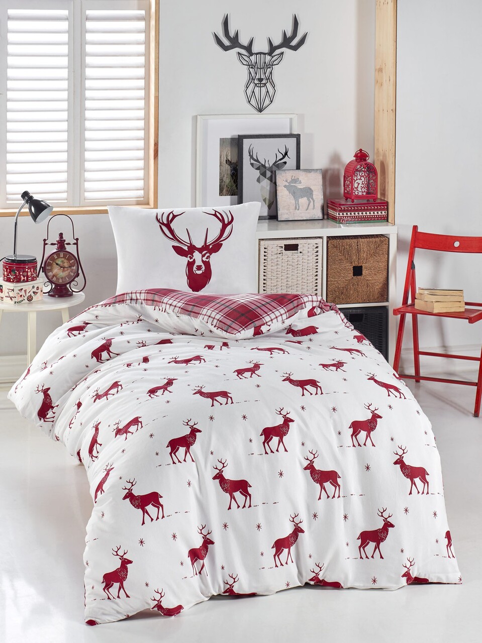 Lenjerie de pat pentru o persoana 2 piese, L'essentiel Maison, Geyik, 65% bumbac/35% poliester, Roșu Claret / Alb
