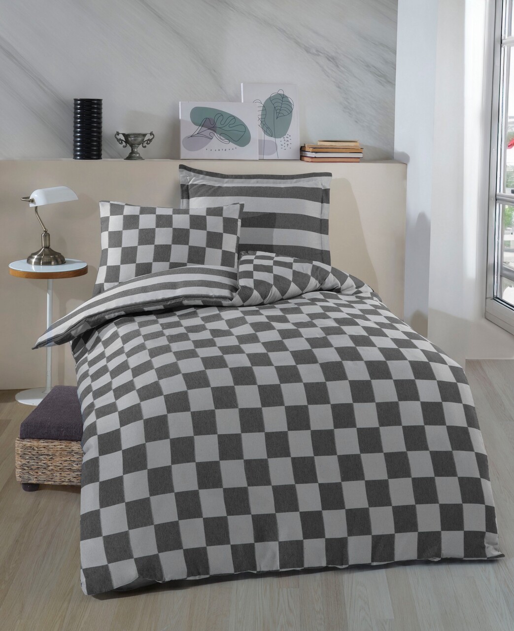 Lenjerie de pat pentru o persoana 2 piese, L'essentiel Maison, Kareli Saten, Bumbac;Poliester, Negru