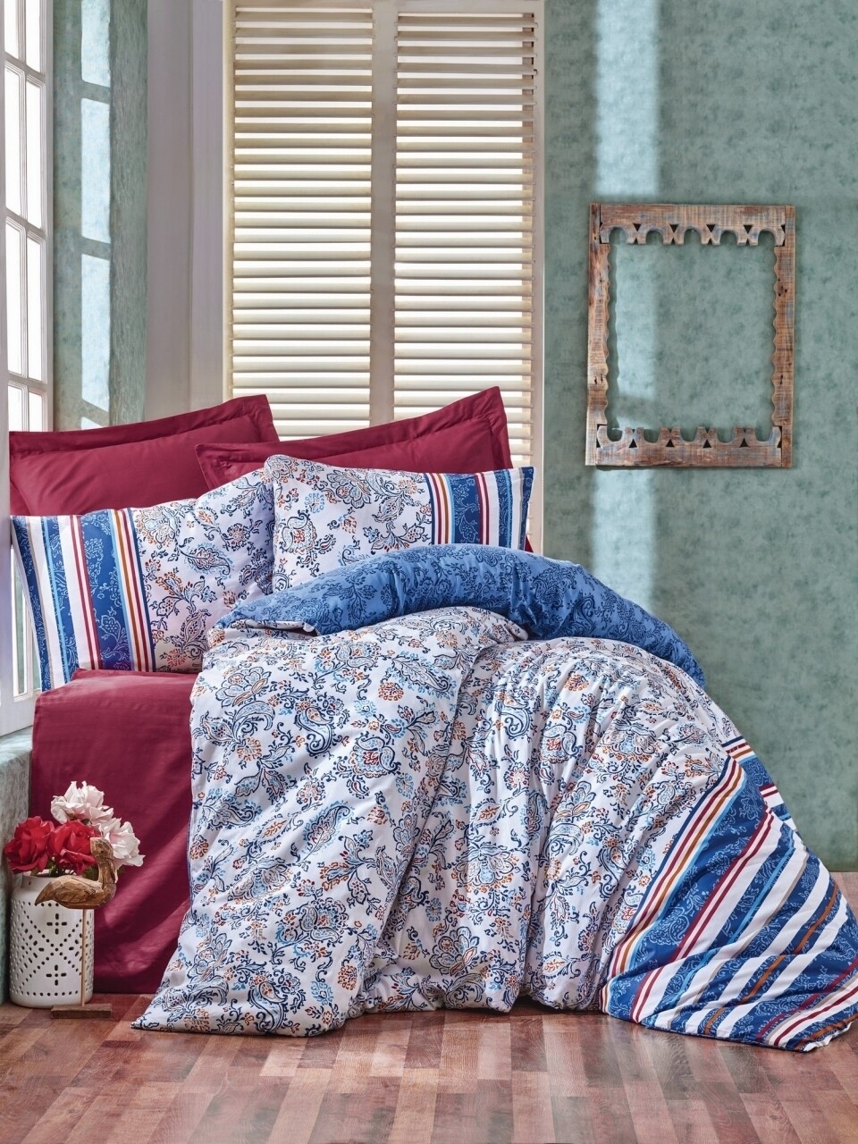 Lenjerie de pat pentru o persoana, 3 piese, 100% bumbac ranforce, Cotton Box, Lorisa