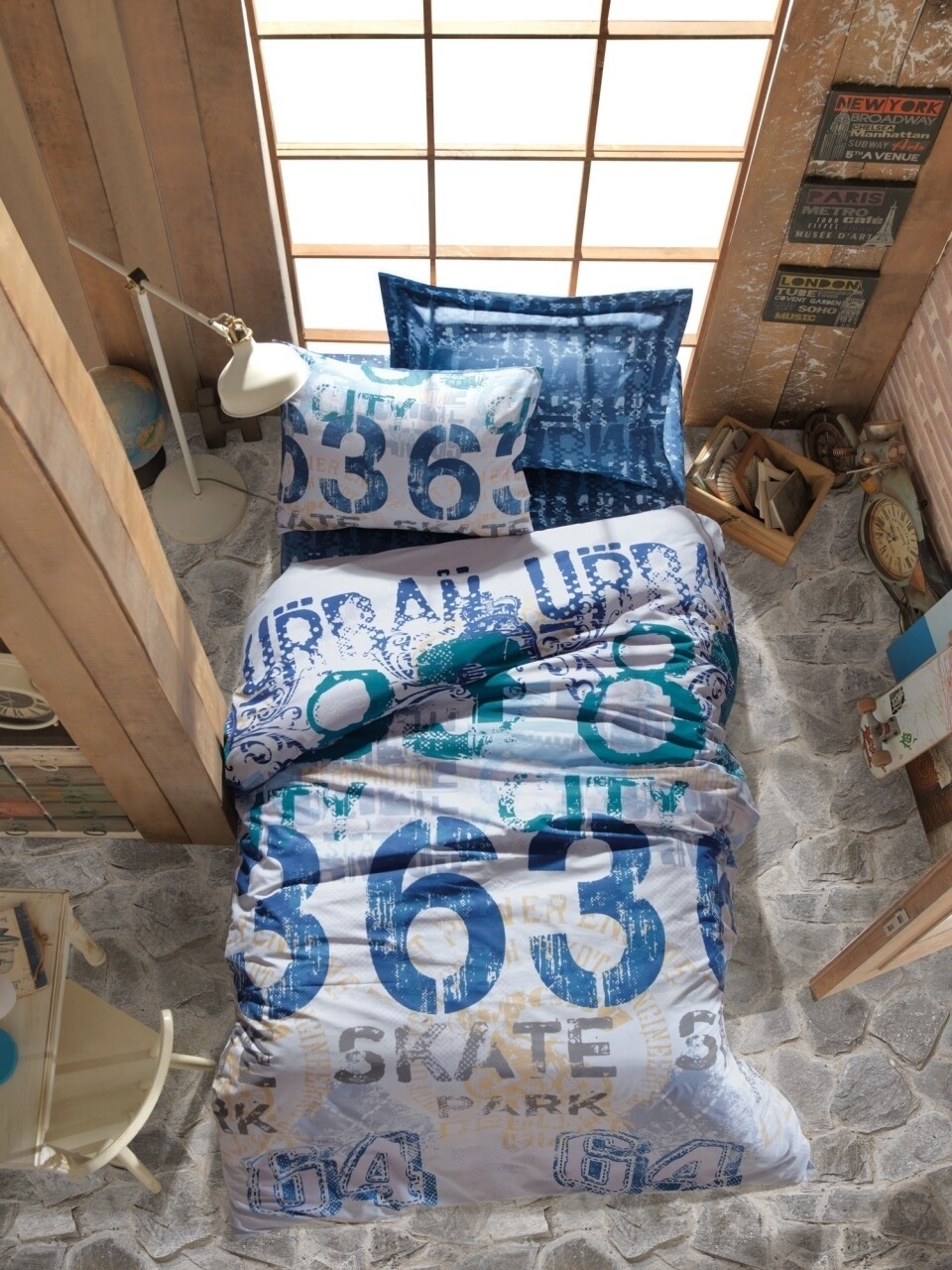 Lenjerie de pat pentru o persoana, 3 piese, 100% bumbac ranforce, Cotton Box, Urban