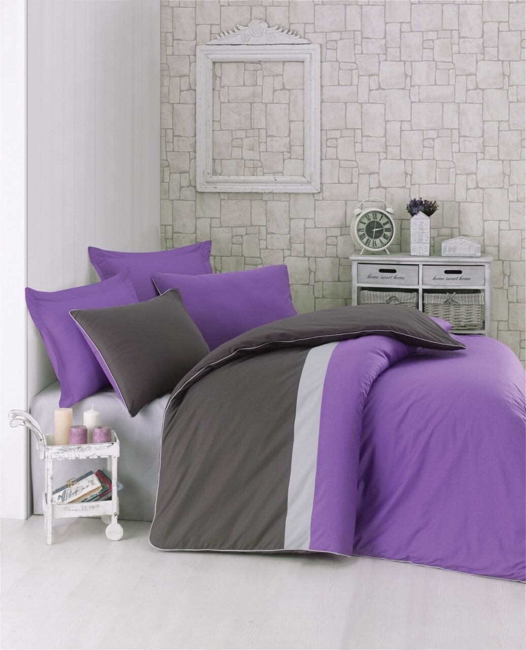 Lenjerie de pat pentru o persoana, 3 piese, 100% bumbac ranforce, Cotton Box, Plain Sport Purple
