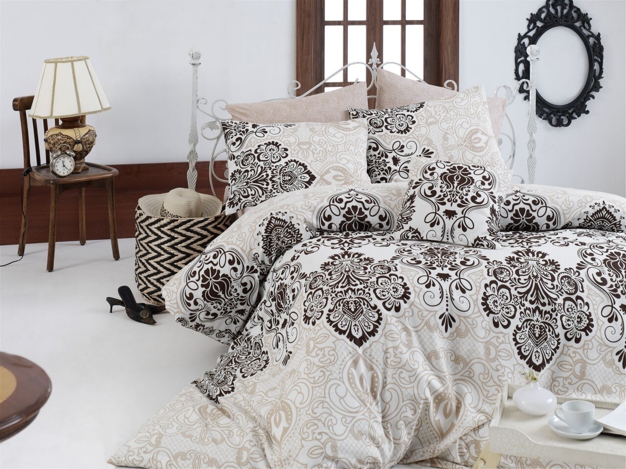 Lenjerie de pat pentru o persoana, 3 piese, 100% bumbac ranforce, Nazenin Home, Luxury Brown, bej/maro