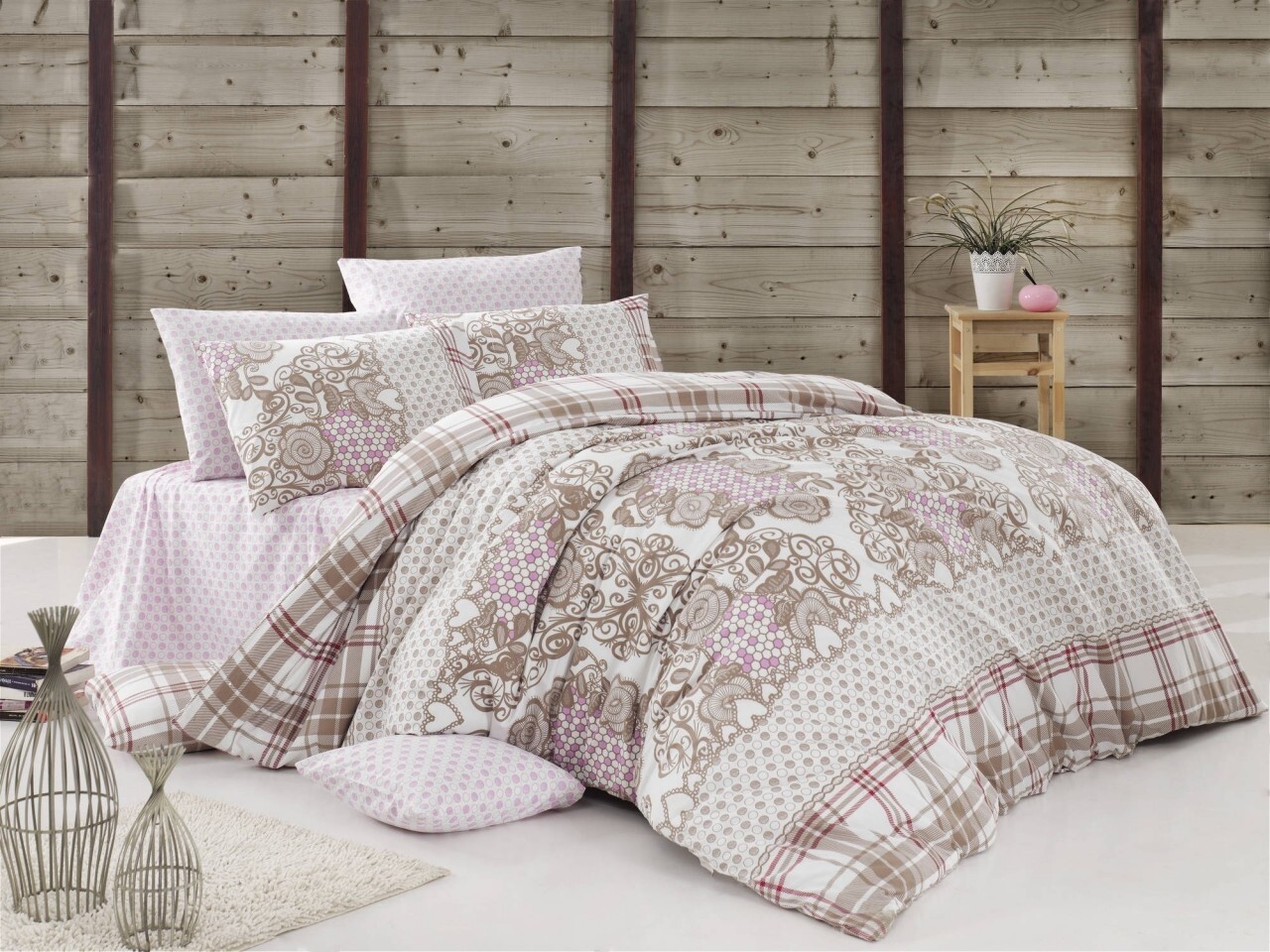 Lenjerie de pat pentru o persoana, 3 piese, 100% bumbac ranforce, Nazenin Home, Oriental Powder, alb/roz/bej