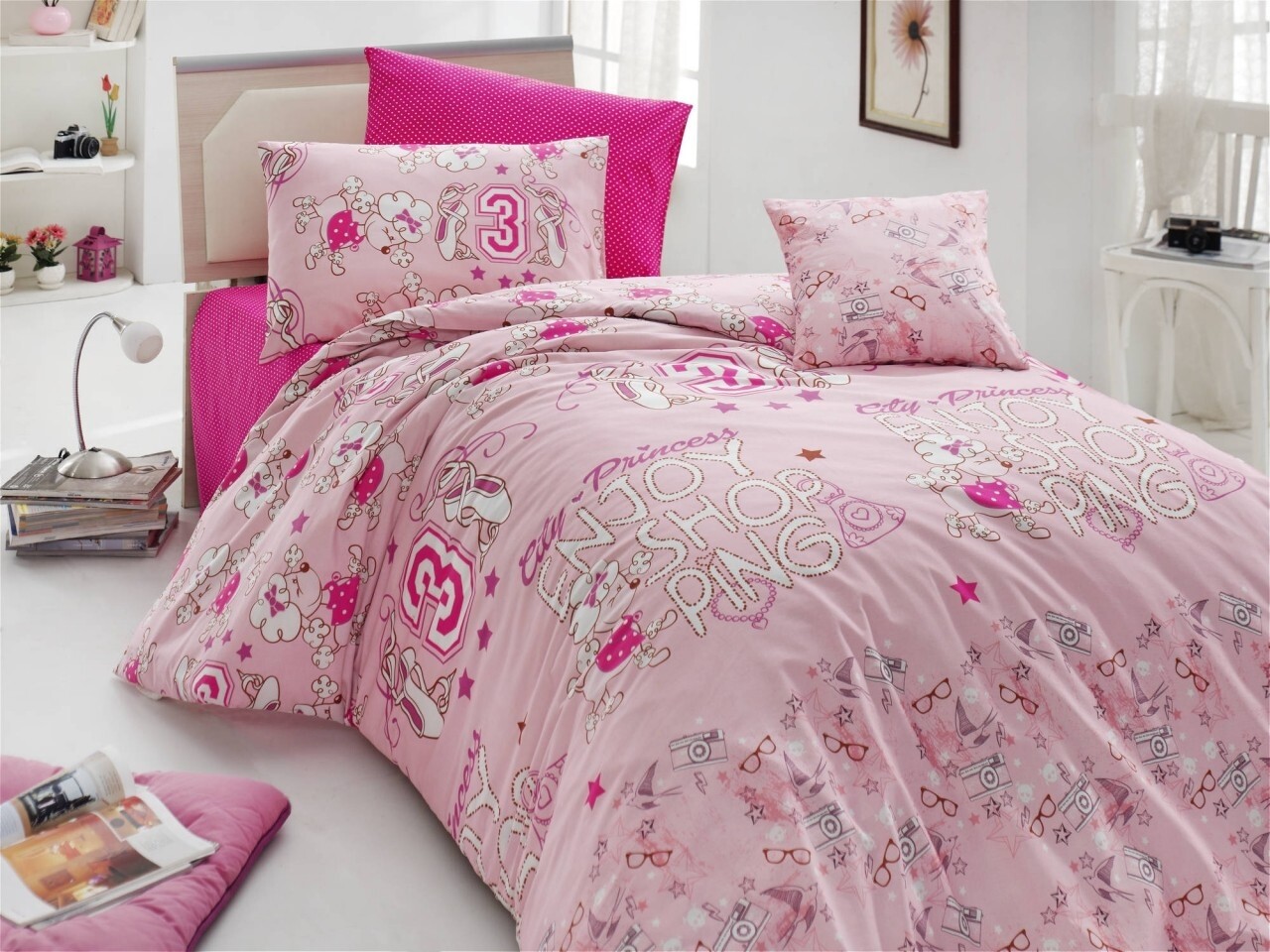 Lenjerie de pat pentru o persoana, 3 piese, 100% bumbac ranforce, Nazenin Home, Sweet, roz