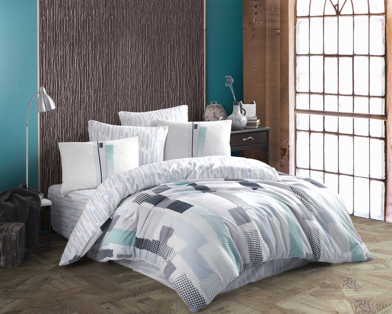 Lenjerie de pat pentru o persoana, 3 piese, 160x220 cm, 100% bumbac ranforce, Hobby, Retro, albastru