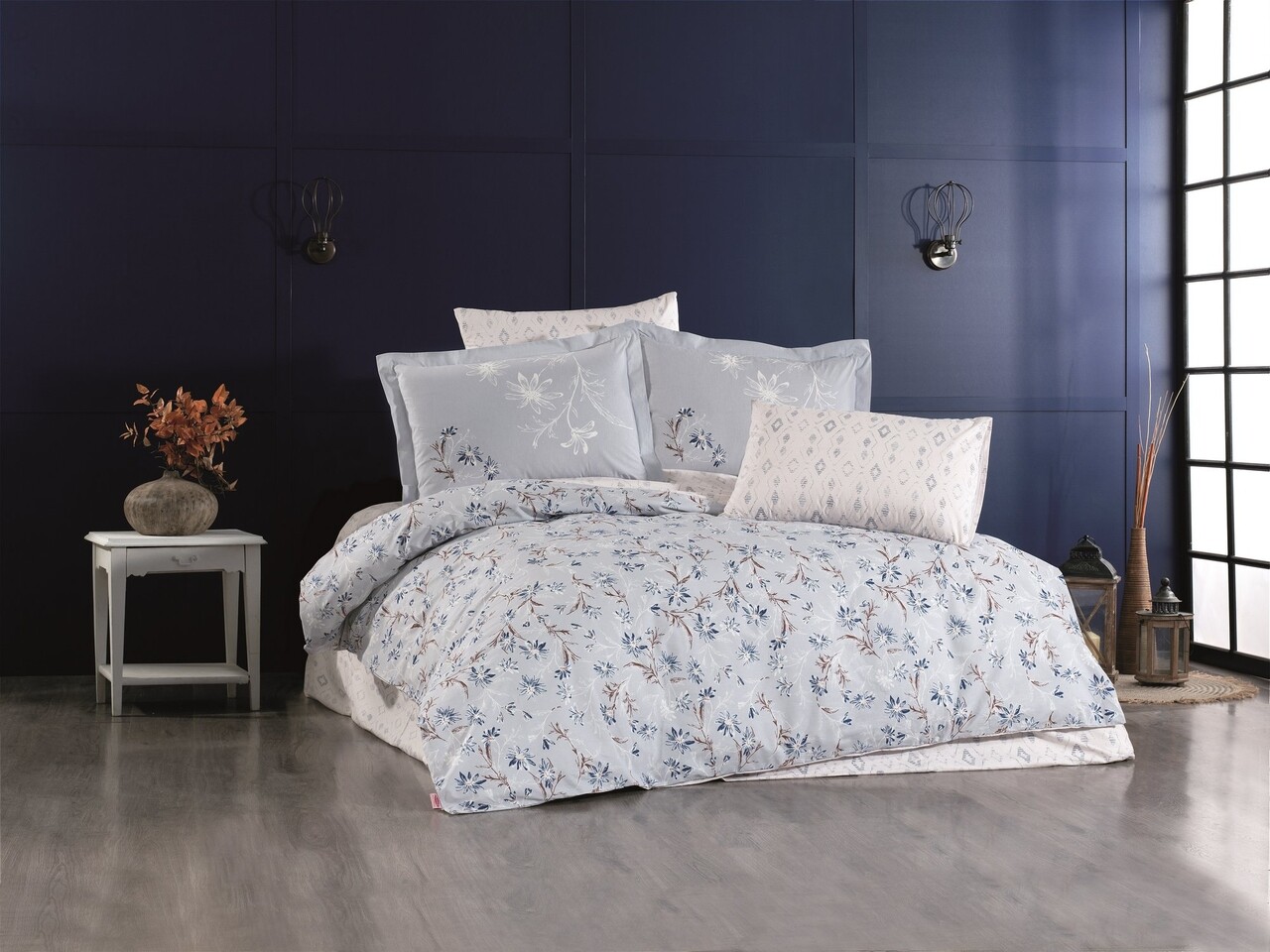 Lenjerie de pat pentru o persoana, 3 piese, 160x220 cm, 100% bumbac poplin, Hobby, Jardin, albastru inchis