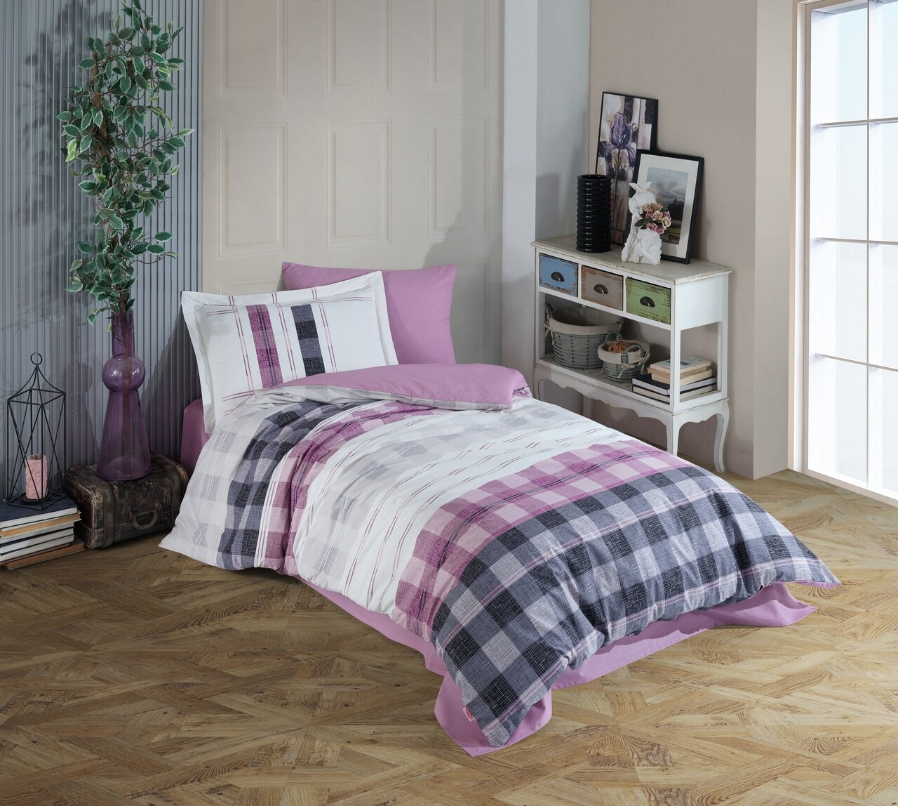Lenjerie de pat pentru o persoana, 3 piese, 160x220 cm, 100% bumbac poplin, Hobby, Suelita, roz
