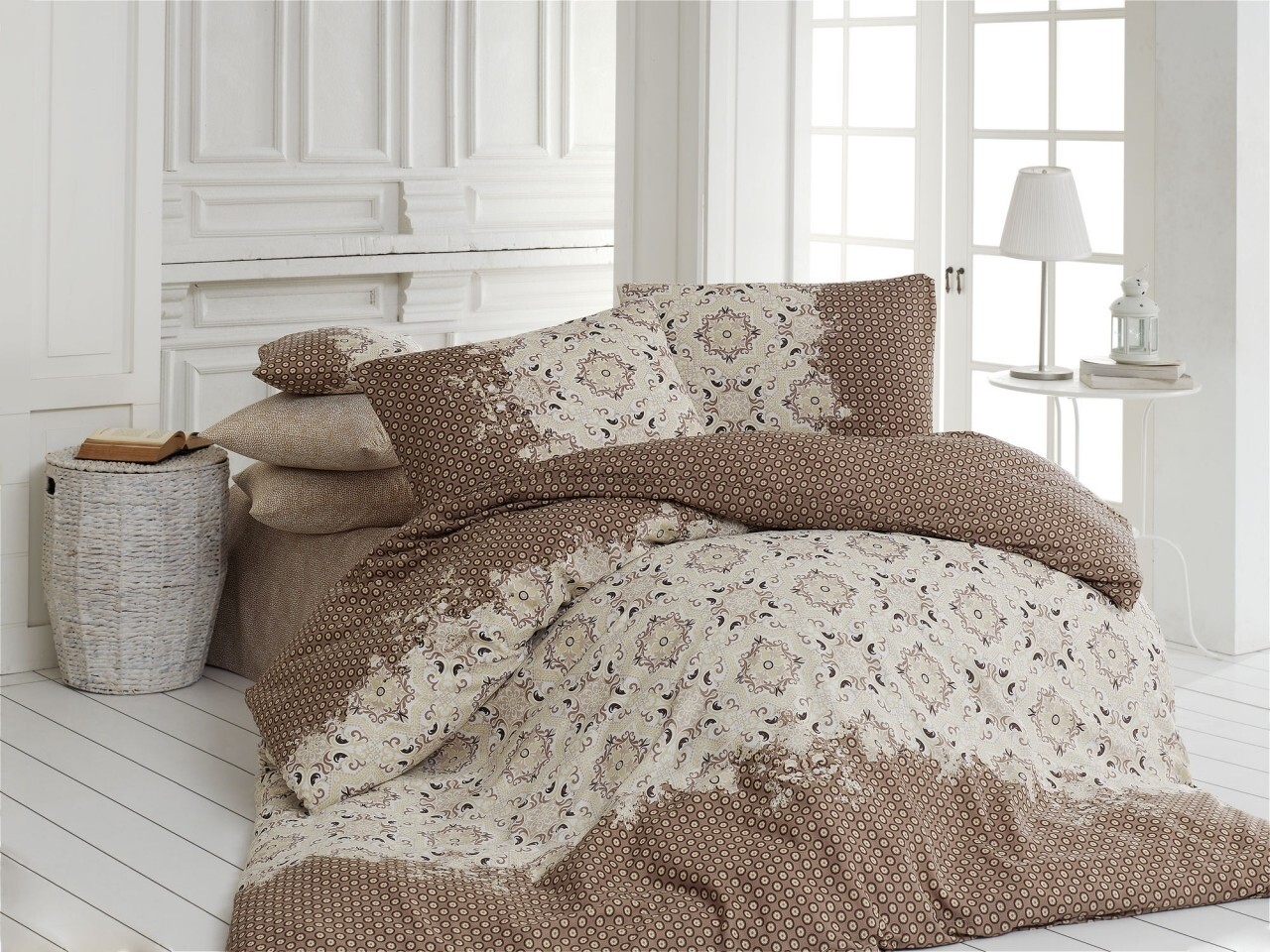 Lenjerie de pat pentru o persoana, 3 piese, amestec bumbac, Nazenin Home, Elsa Brown, maro