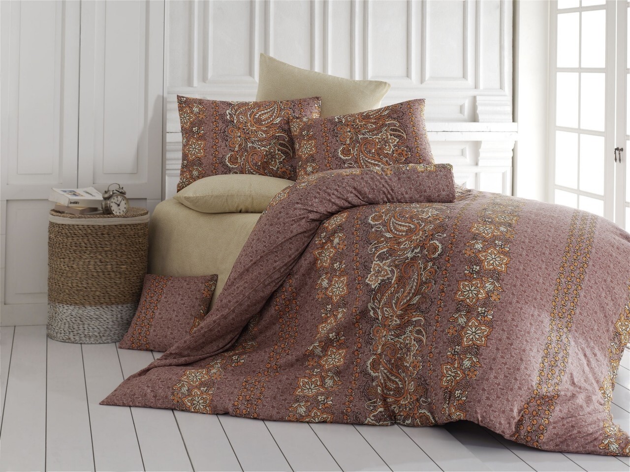Lenjerie de pat pentru o persoana, 3 piese, amestec bumbac, Nazenin Home, Herra, maro