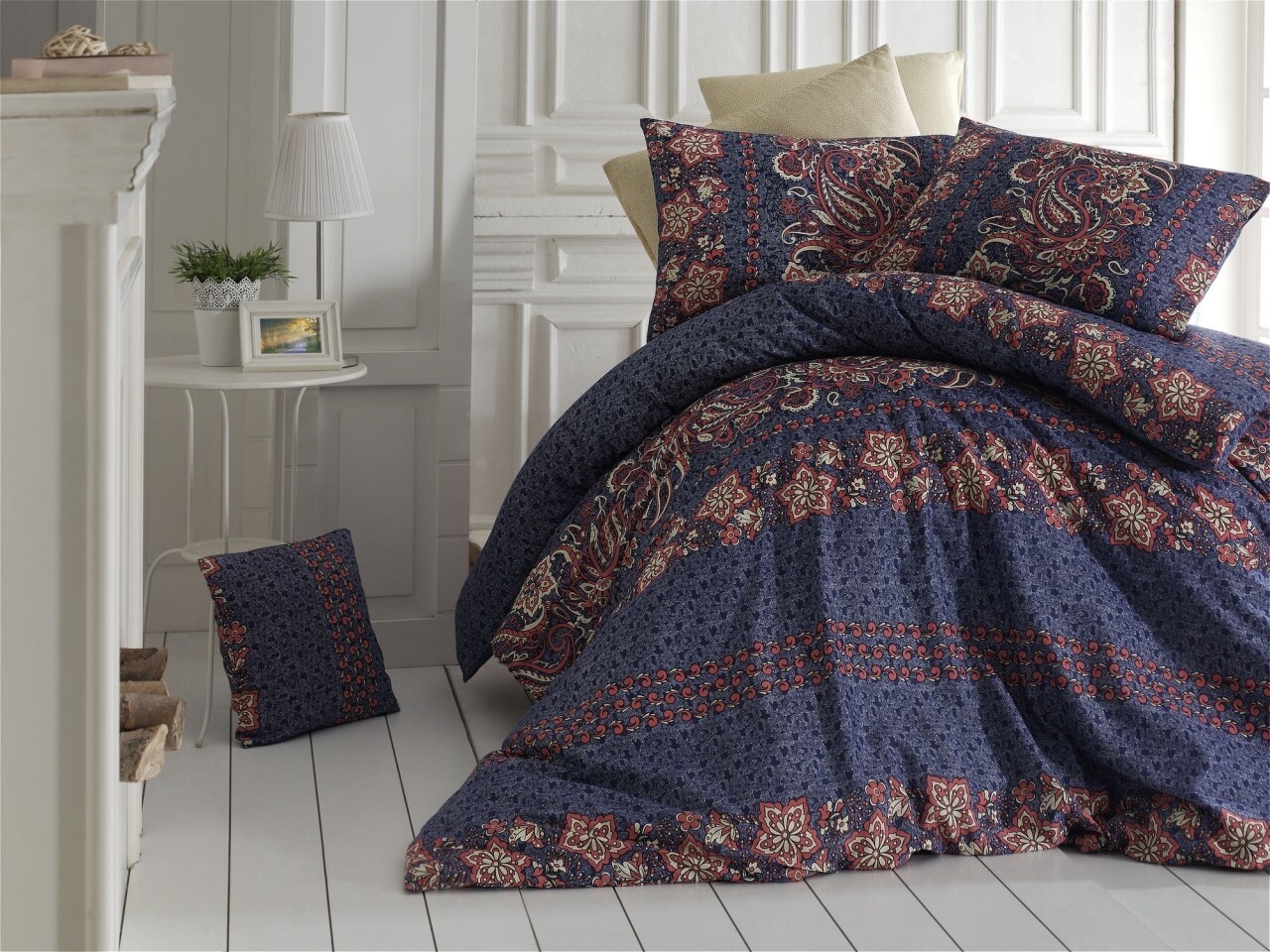 Lenjerie de pat pentru o persoana, 3 piese, amestec bumbac, Nazenin Home, Herra Royal, bleumarin/bej