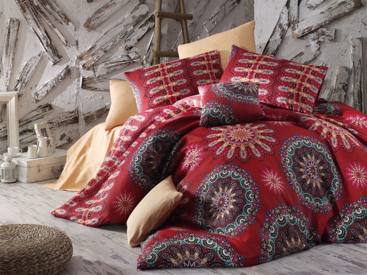 Lenjerie de pat pentru o persoana, 3 piese, amestec bumbac, Nazenin Home, Hula, rosu