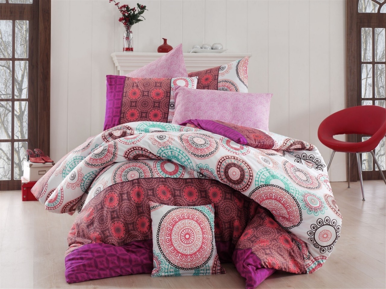 Lenjerie de pat pentru o persoana, 3 piese, amestec bumbac, Nazenin Home, Ringo Pink, roz