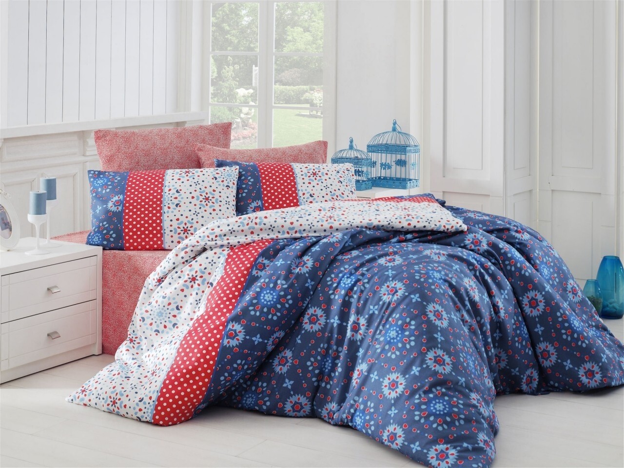 Lenjerie de pat pentru o persoana, 3 piese, amestec bumbac, Nazenin Home, Spoty, multicolora