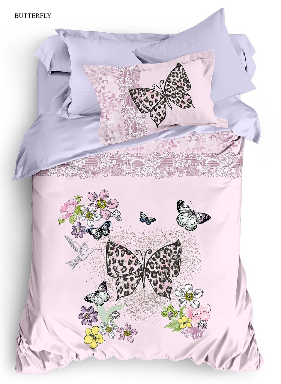 Lenjerie de pat pentru o persoana, 3 piese, The Club Cotton, Butterfly, bumbac ranforce, 145 TC, multicolor