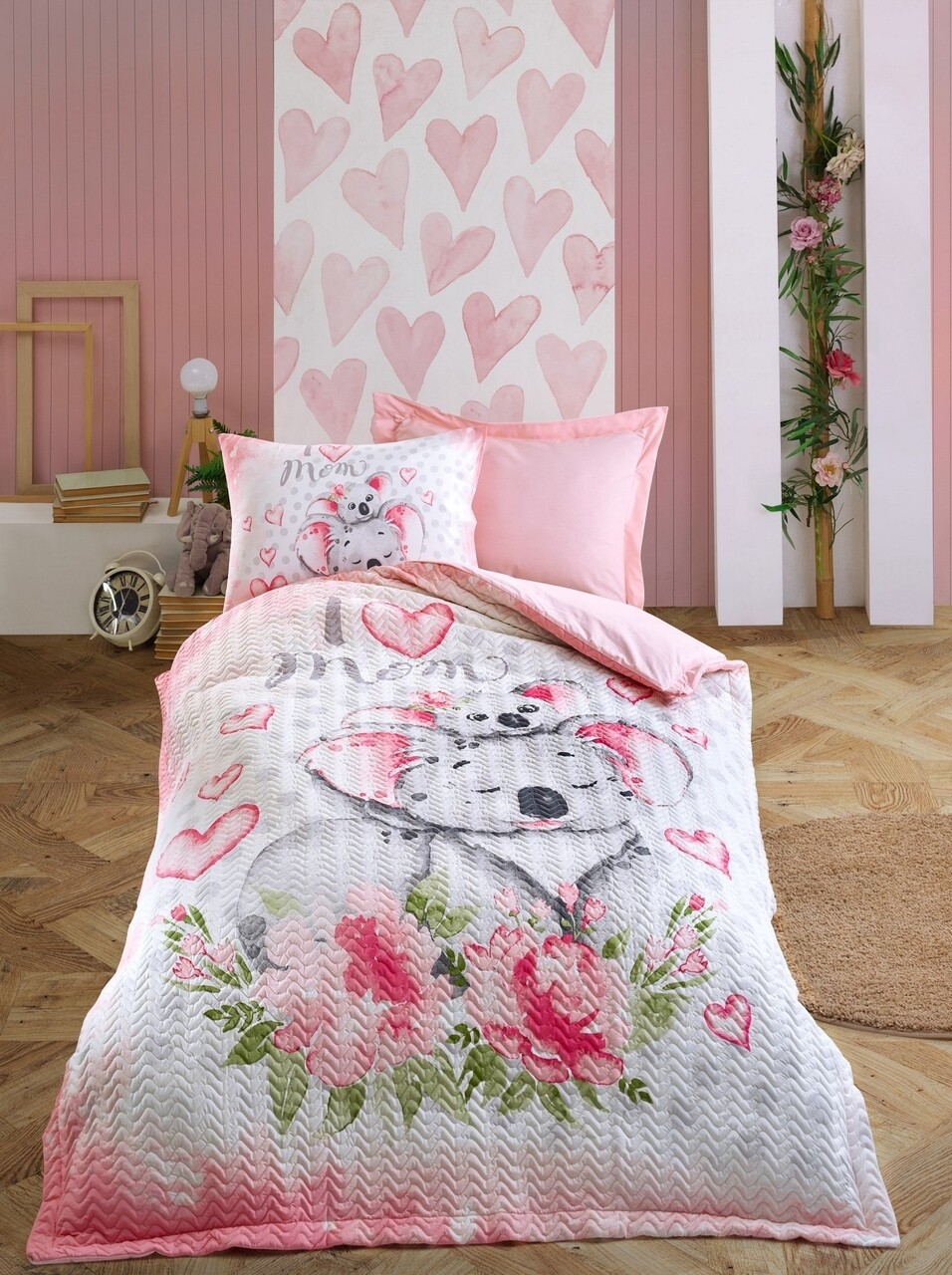 Lenjerie de pat pentru o persoana, 4 anotimpuri, Koala - Pink, Cotton Box, 3 piese, bumbac ranforce, roz