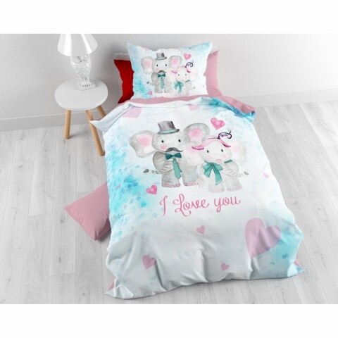 Elefanteii jucausi si delicati sunt gata pentru povestea de seara. Cu un mesaj simpatic de dragoste, aceasta lenjerie ii va ajuta pe micuti sa adoarma imediat si sa se bucure de un somn linistit.