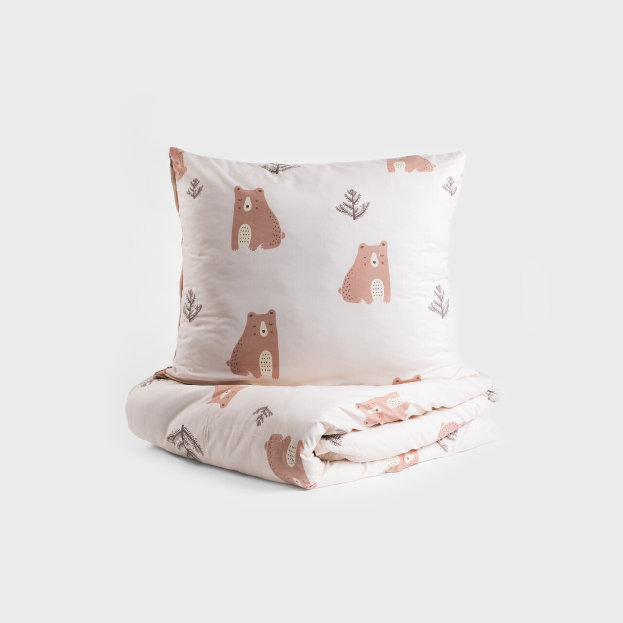 Setul BEARIE este format dintr-o husa de pilota cu dimensiunea 140x200 cm si o fata de perna cu dimensiunea 70x80 cm.
