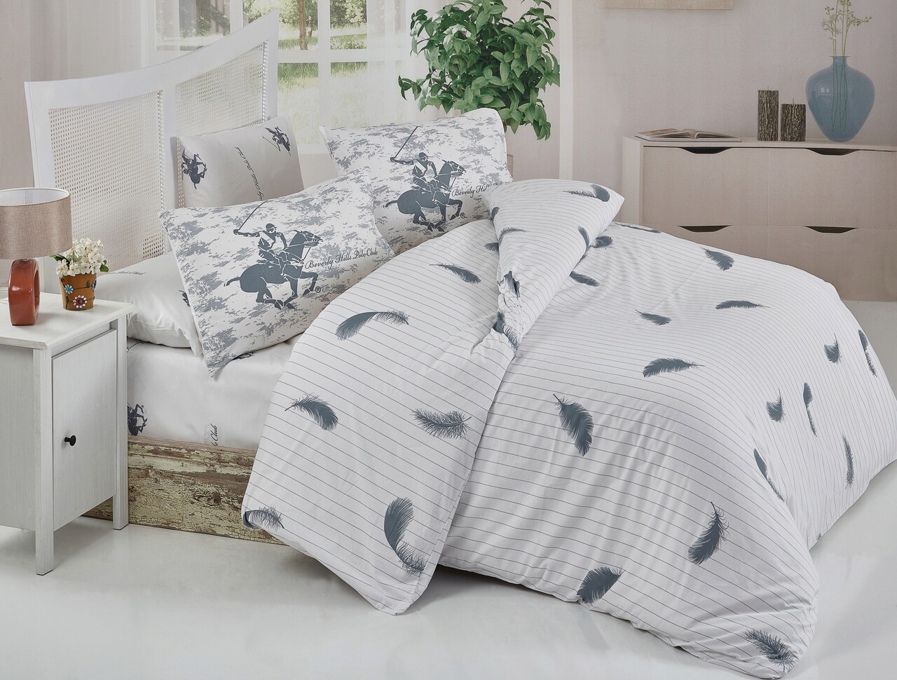 Lenjerie de pat pentru o persoana, BHPC 034 - Grey, Beverly Hills Polo Club, Bumbac Ranforce