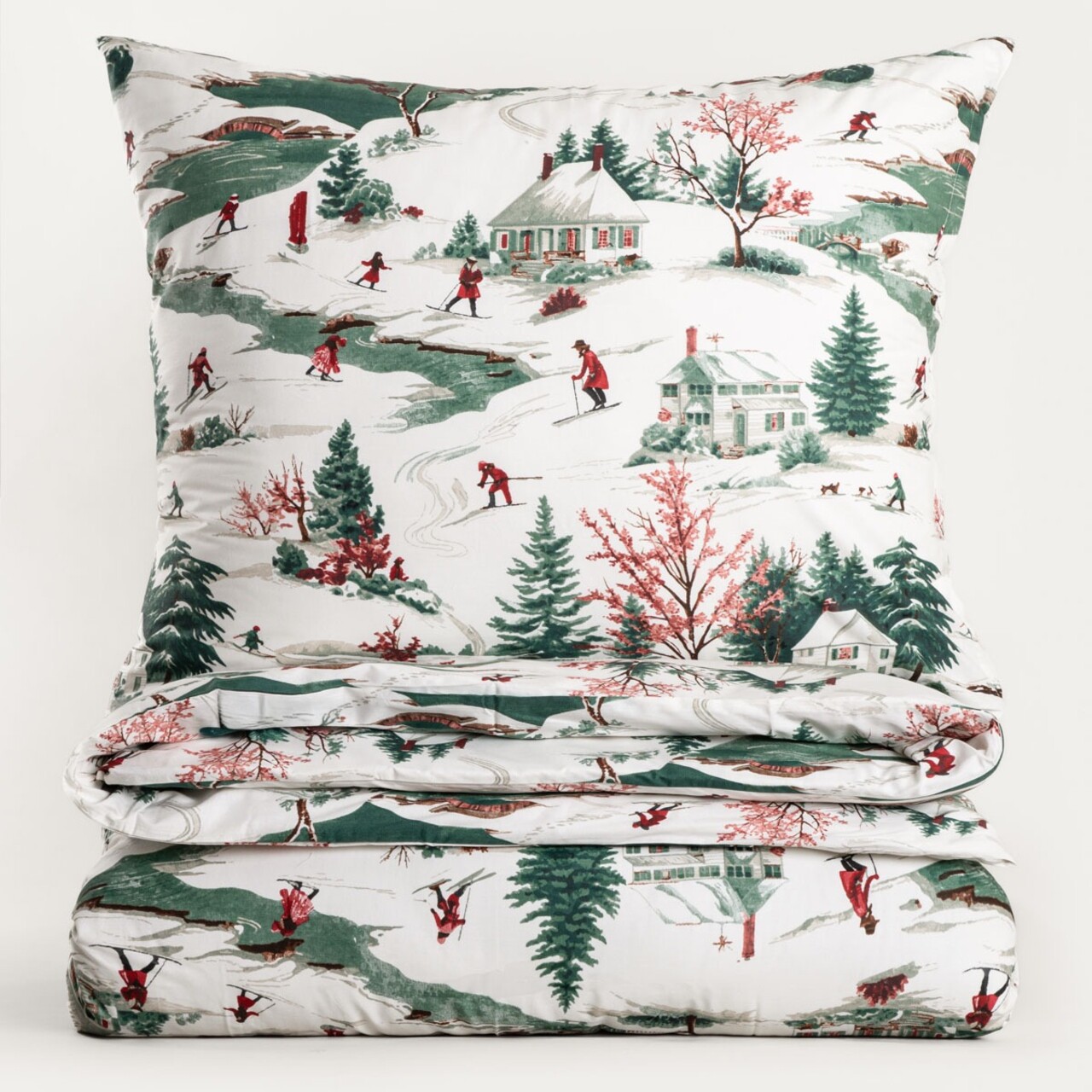 Creati o atmosfera unica in dormitorul dumneavoastra cu lenjeria de pat CORTINA. Cu motive festive aceasta lenjerie de pat aduce spiritul Craciunului direct in dormitor, oferind confort si o atmosfera plina de veselie. Este, de asemenea, o optiune excelenta pentru un cadou practic.