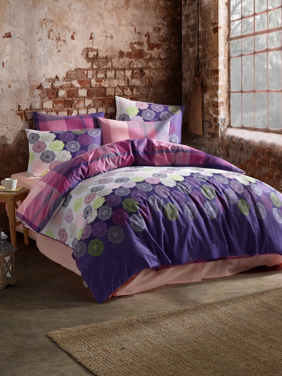 Lenjerie de pat pentru o persoana Dantel, Majoli Home Collection, 3 piese, 160x240 cm, 100% bumbac ranforce, alb/mov