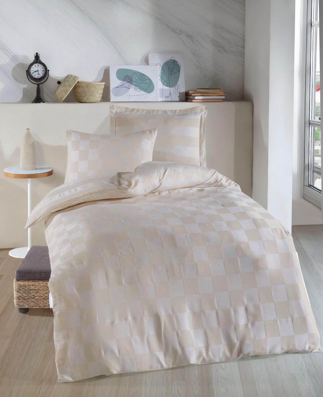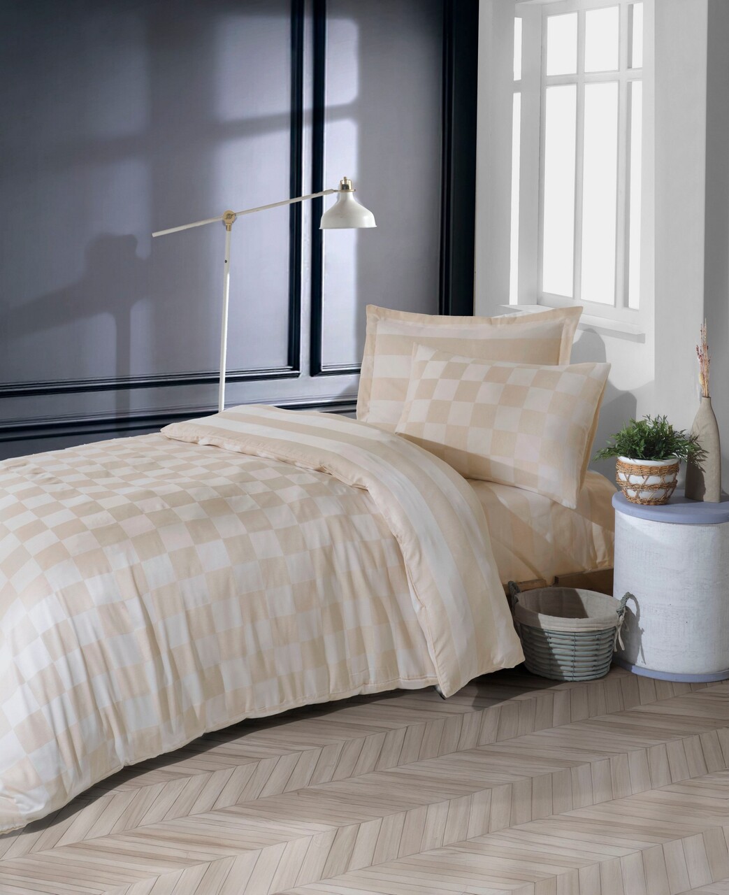 Lenjerie de pat pentru o persoana (DE), 2 piese, L'essentiel Maison, Kareli Saten, Bej