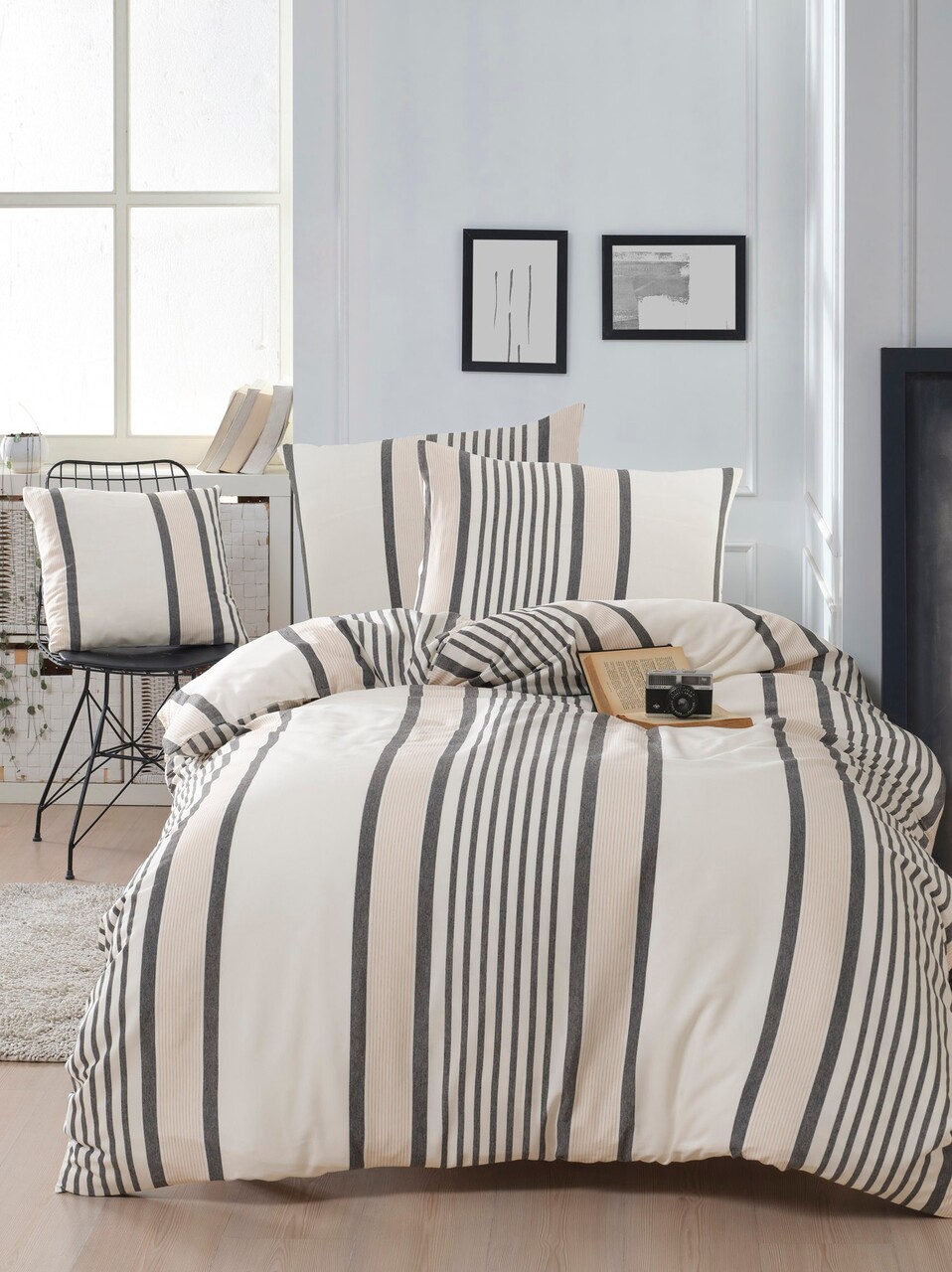 Lenjerie de pat pentru o persoana (DE), 2 piese, L'essentiel Maison, Astana, Bumbac;Poliester, Bej/Negru