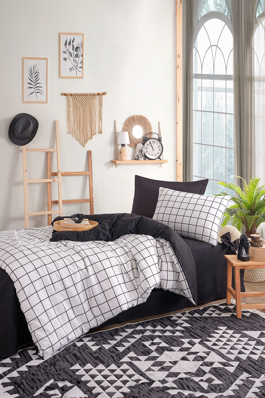 Lenjerie de pat pentru o persoana (DE), 2 piese, L'essentiel Maison, Artus, Alb/Negru