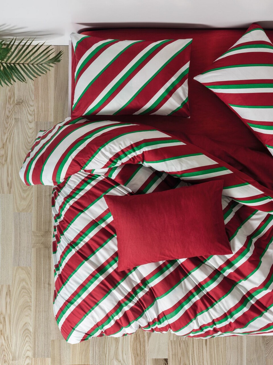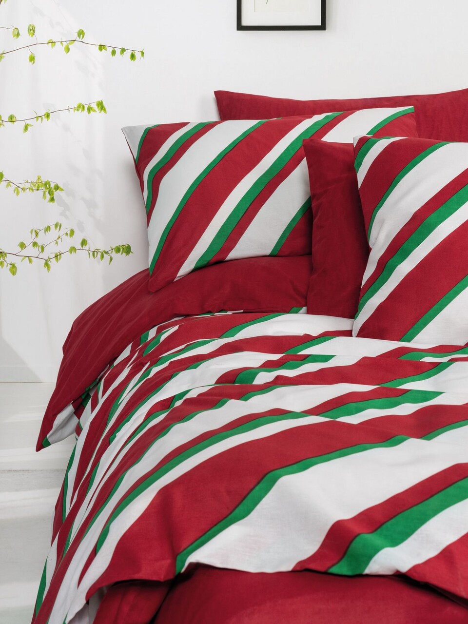 Lenjerie de pat pentru o persoana (DE), L'essentiel Maison, Merry, Verde / Roșu / Alb