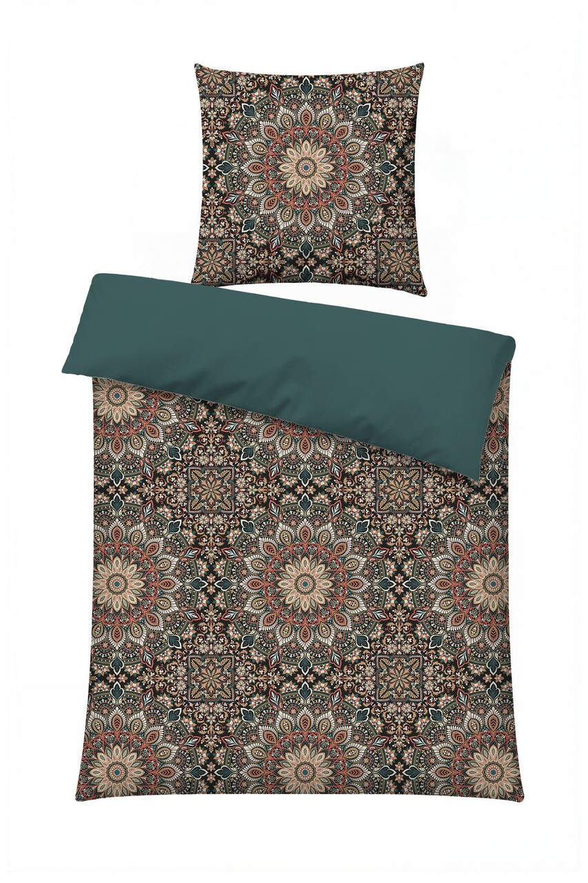 Lenjerie de pat pentru o persoana (DE), L'essentiel Maison, Ornate, Albastru petrol