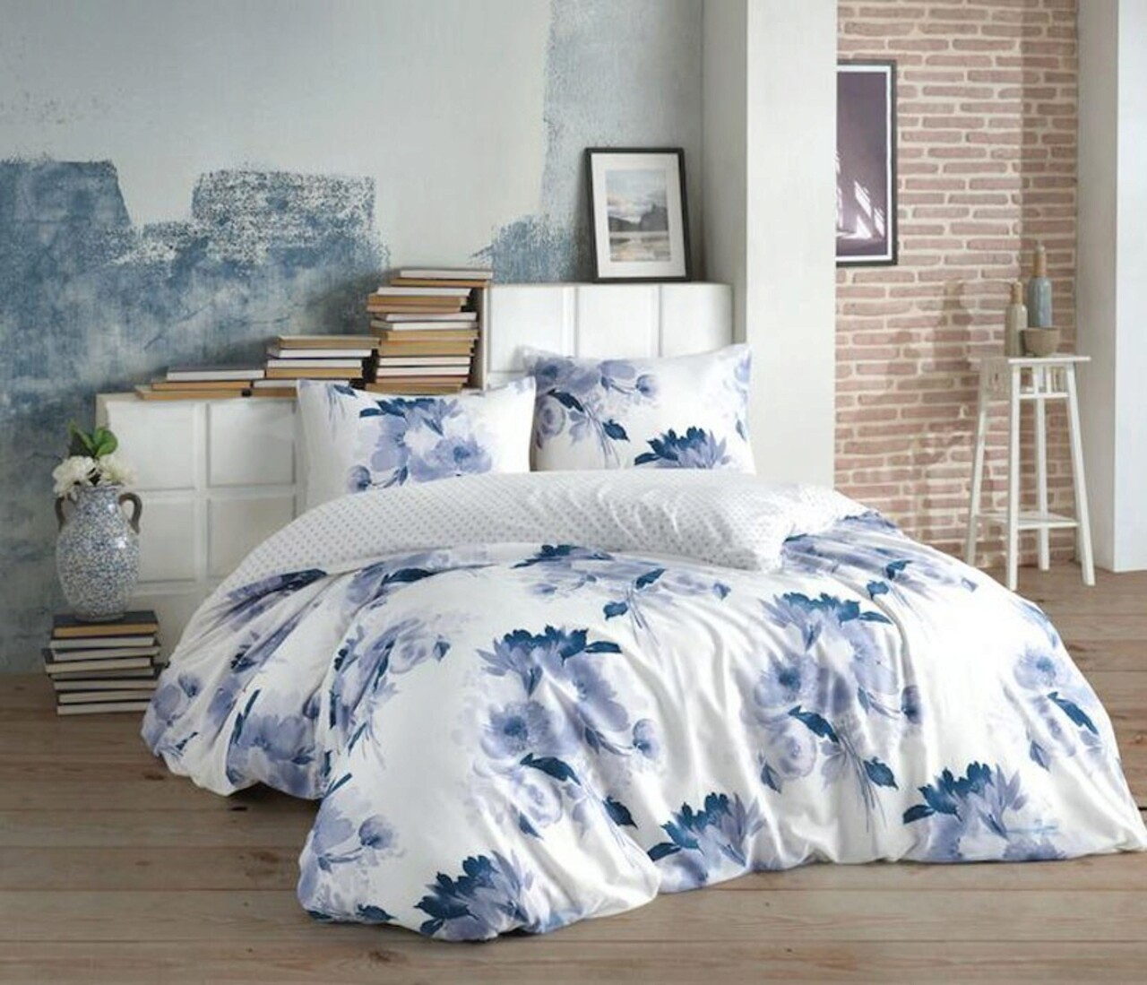 Lenjerie de pat pentru o persoana (DE), L'essentiel Maison, Servet, Alb/Albastru inchis