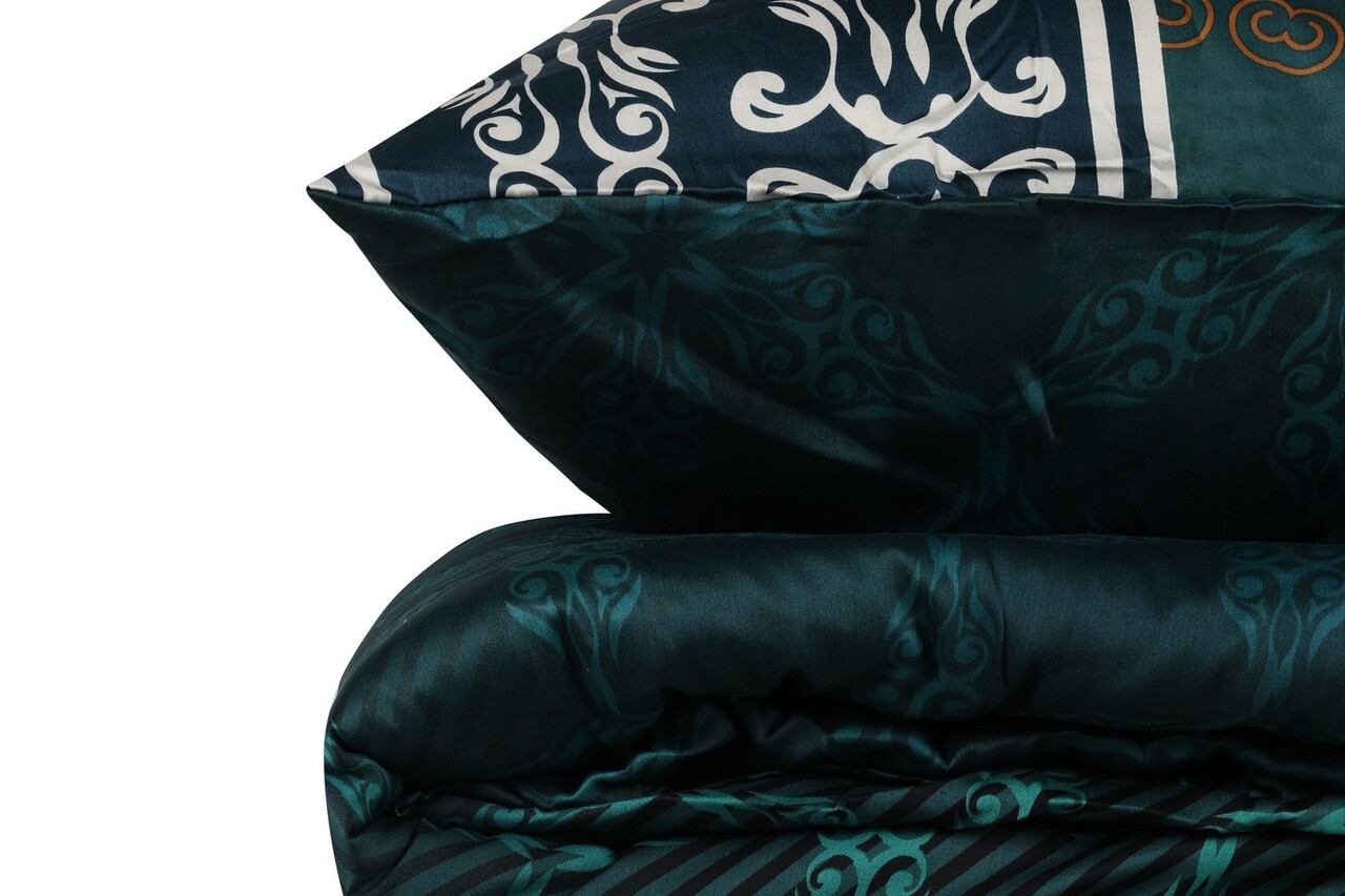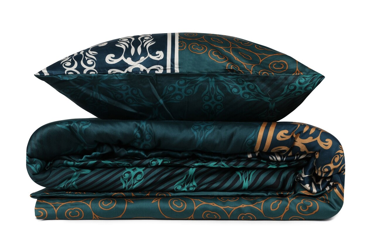 Lenjerie de pat pentru o persoana (ES), L'essentiel Maison, Alisa, Verde închis / Muștar / Maro