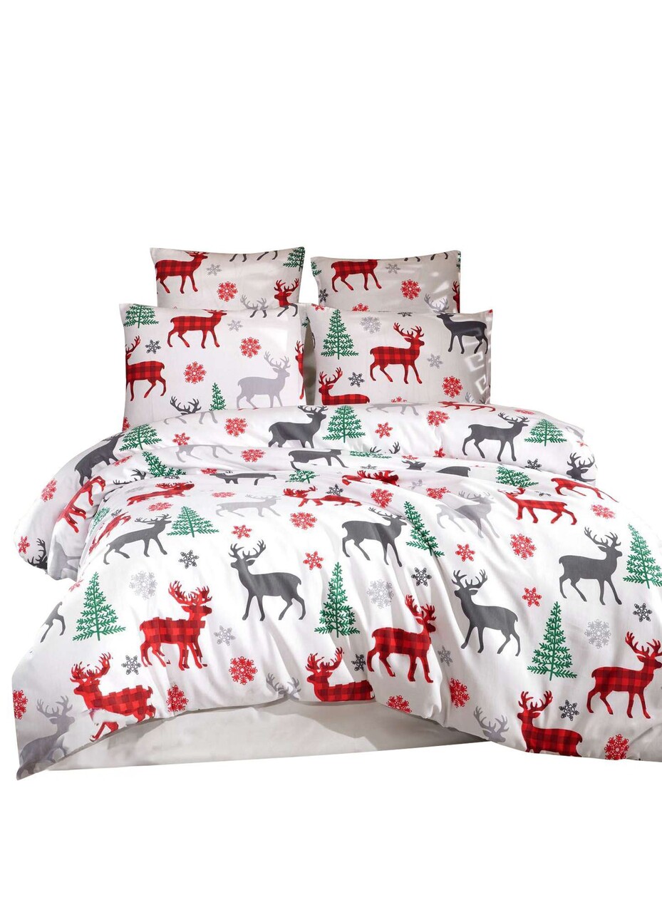 Lenjerie de pat pentru o persoana (EU) (IT), 2 piese, L'essentiel Maison, Geyik, Alb / Roșu / Verde / Gri